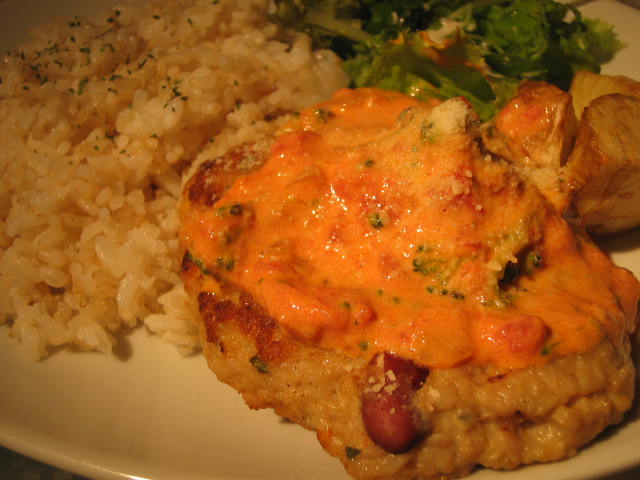 水:*お豆の鶏バーグ丼トマトクリームソース