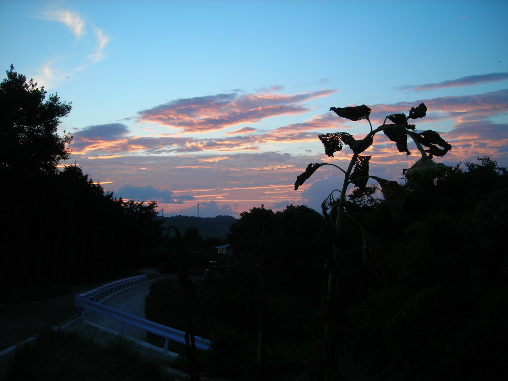 そして、朽ちたヒマワリの後ろにはきれいな夕焼けも見えるんですもの!