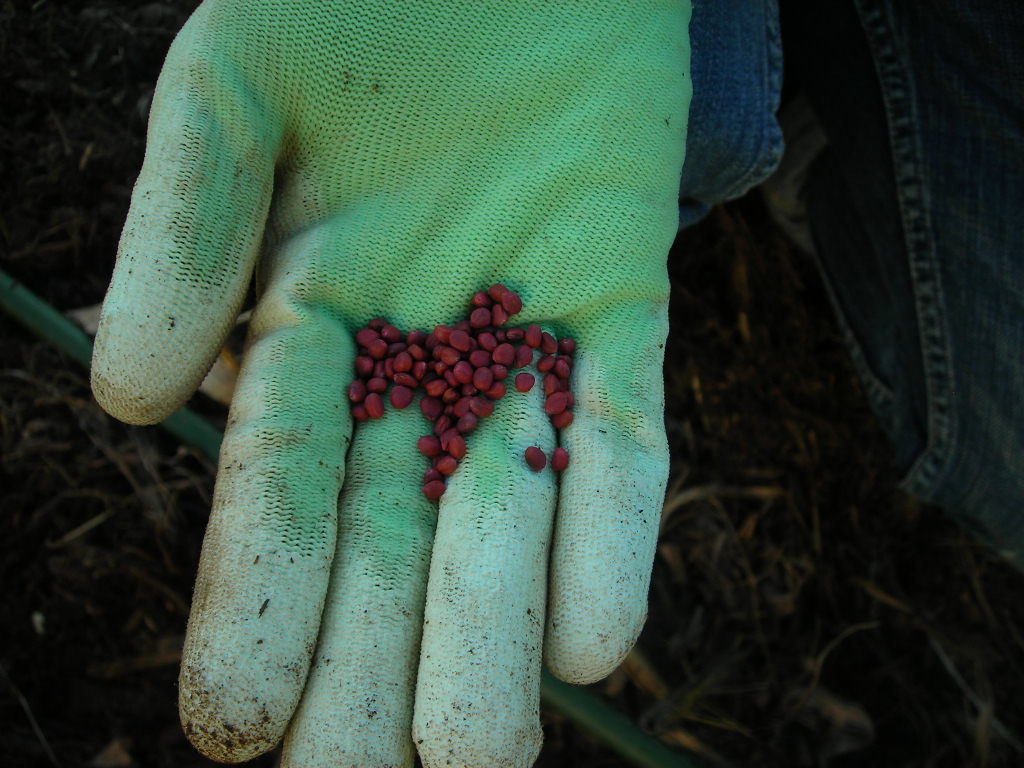 ジャガイモの横には大根を、同じく30センチ間隔で2粒づつ植えたわ!
