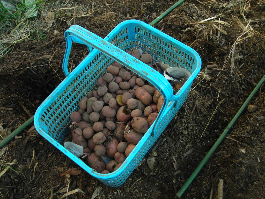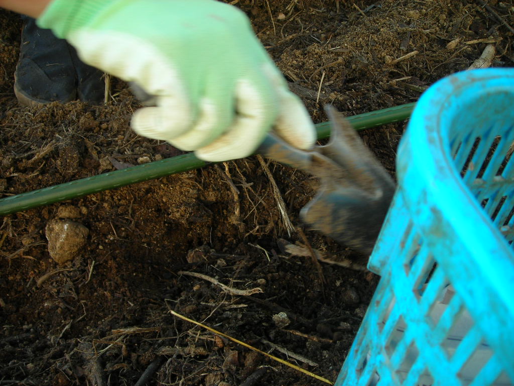 ボスが芽が出そうなジャガイモを掘ってこれが育つのを待つ。
