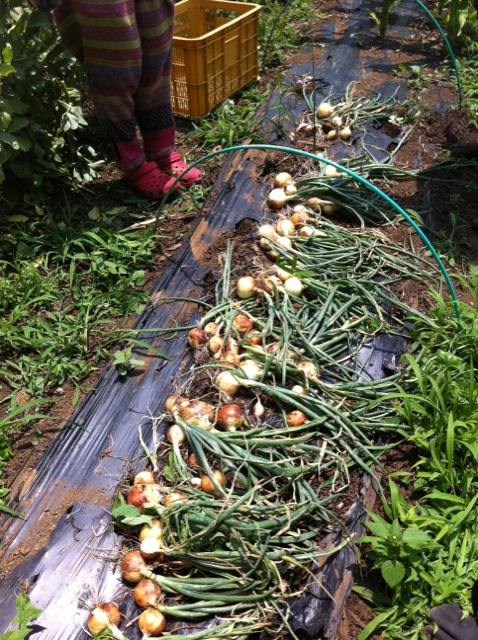 スムーズに到着し、玉葱を収穫!!!以外と簡単にすぽすぽ抜けるので六人だとあっという間です。あとは、雑草を抜き、バジルの様子を見つつ、なってる空豆を皮まま頂きました。皮のままでも食べれるくらいフレッシュ!甘くてみずみずしいです~