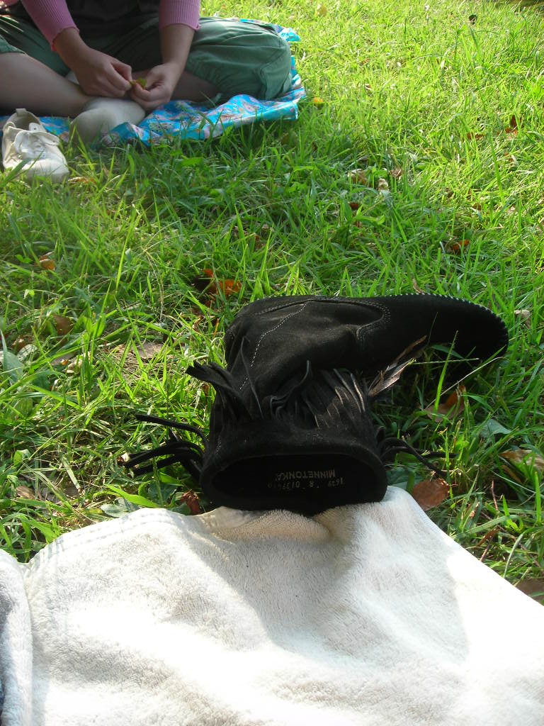 代々木公園の芝生の上でブーツを脱いで、ルーシーダットンを教えてもらいながら、お友達とリラーックス。