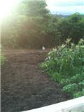 今日は糸状菌の入った山盛りの土を畑にまく力仕事よ~