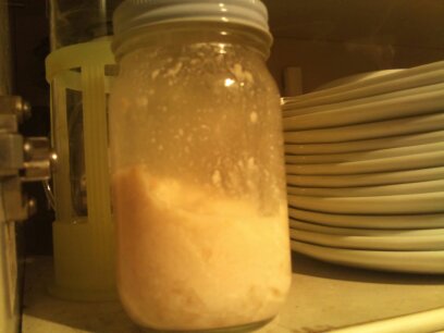 この酵母は大体100g位でき、元だねに対して、粉は300gくらい。