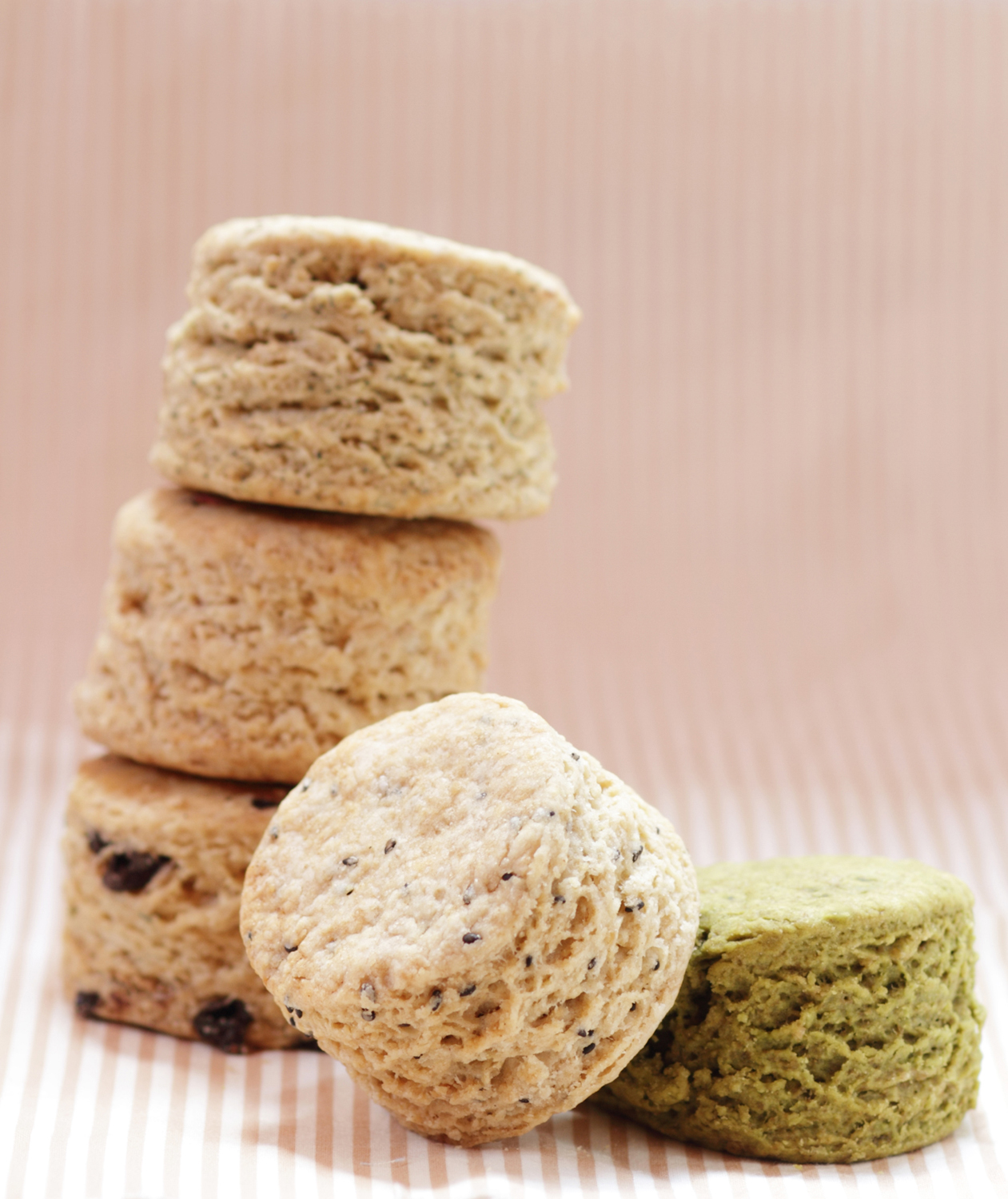 前もって、チャイ、抹茶、アールグレイ、メープルくるみ、プレーンのスコーンと、オレンジピールとカカオマスのケーキを仕込み始めます。