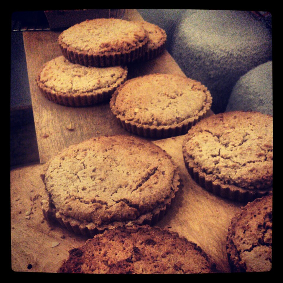 バンダのタルト台はバターも卵も入ってないので、木の実と菜種油などで繋げています。乾燥しやすいので、崩れやすく、何個か割ってしまいました。