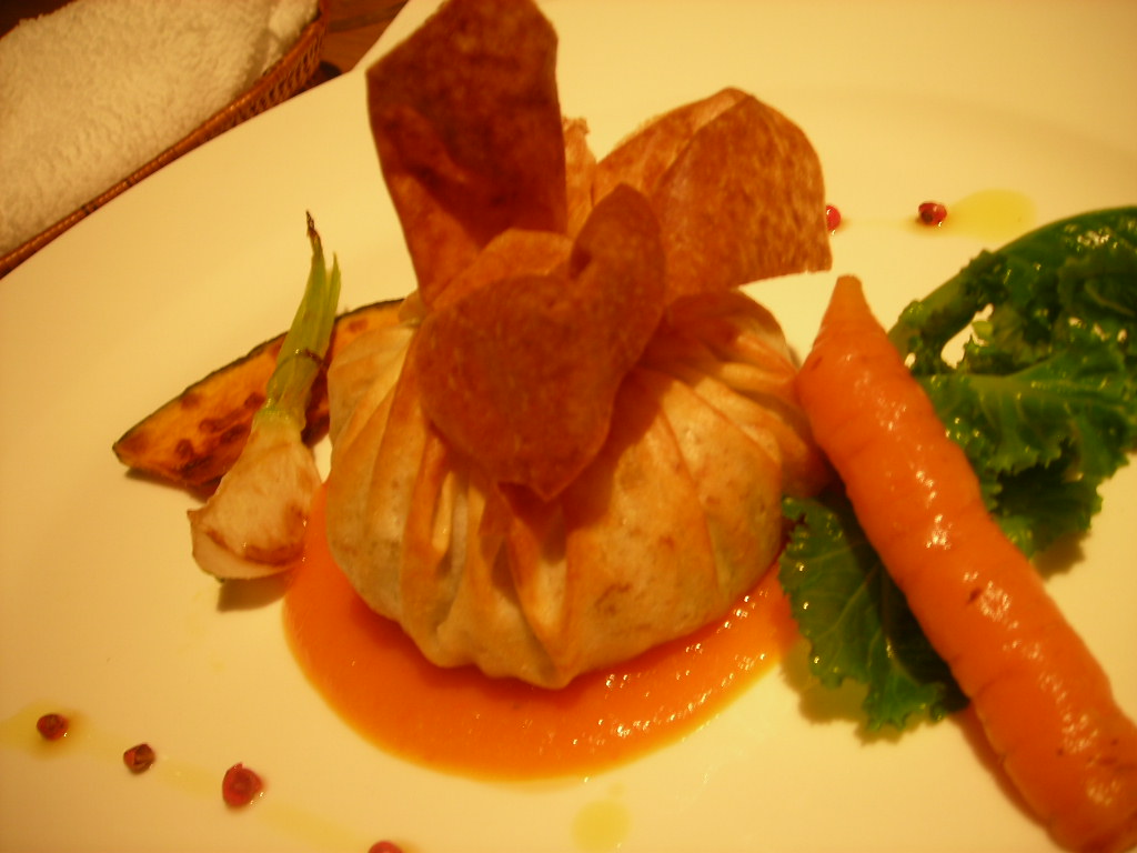 クシのお友達とワインを飲みながら美味しいvegiコースを注文。