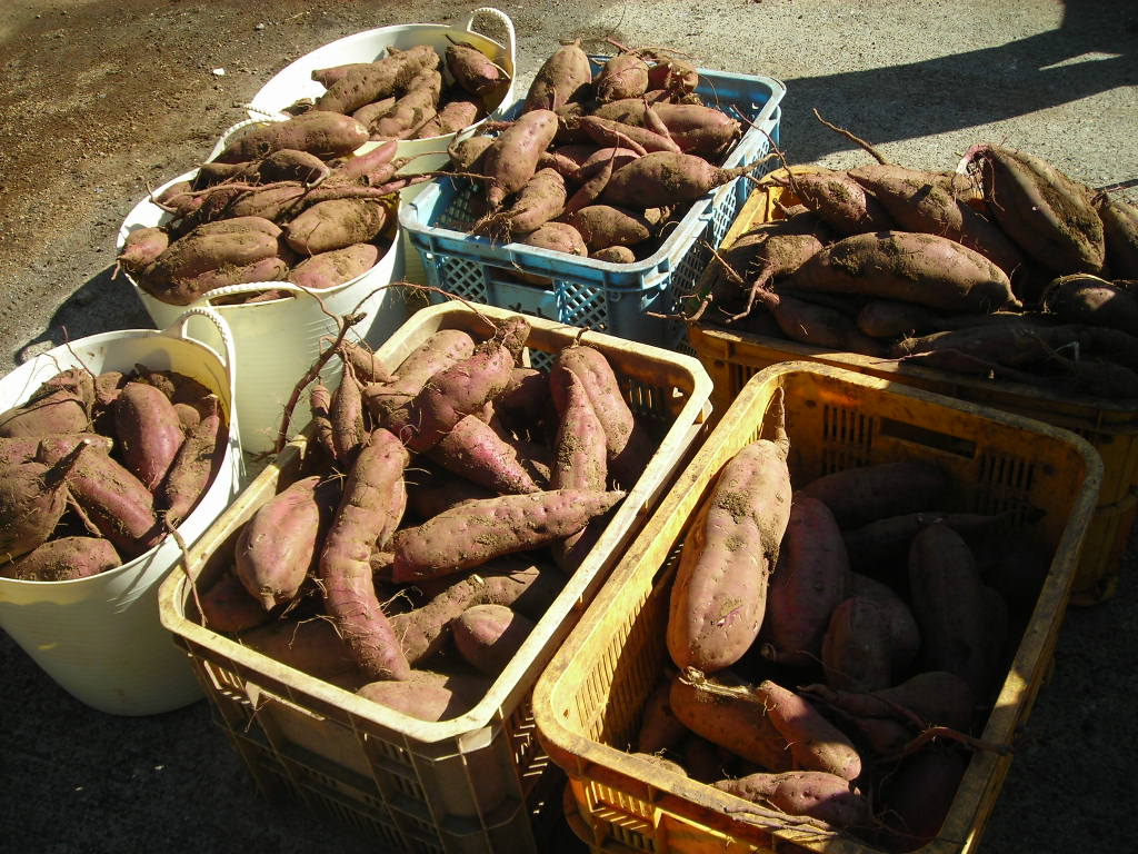 さつまいもを掘り掘りしたり、大根や里芋やネギなどたくさんのお野菜が取れました。芋づる式にお芋がザックザク、ここ掘れワンワン状態。